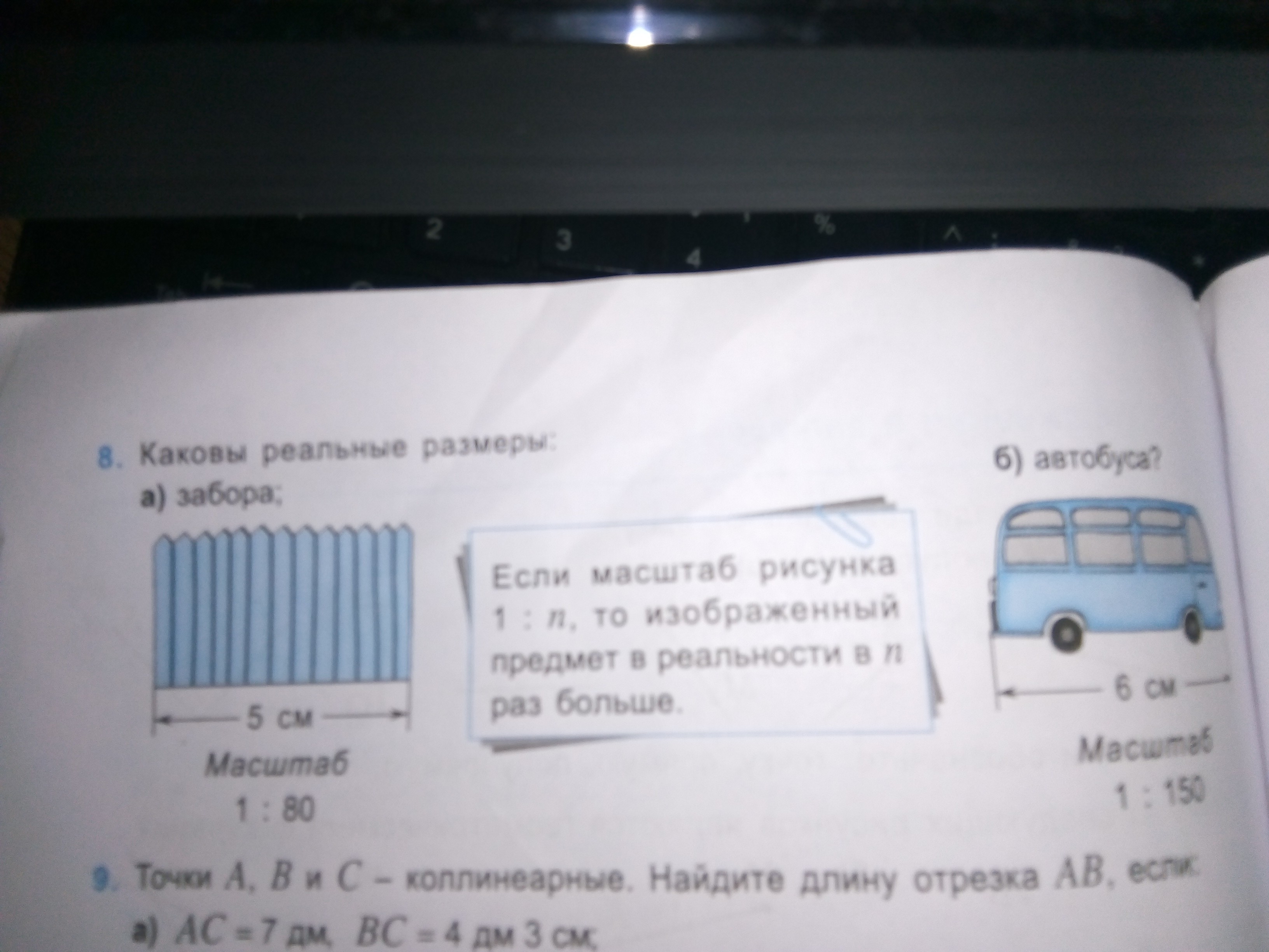 б) Делаем все по тому же принципу: размер реального автобуса в 150 раз больше, поэтому 6 см * 150 = 900 см.