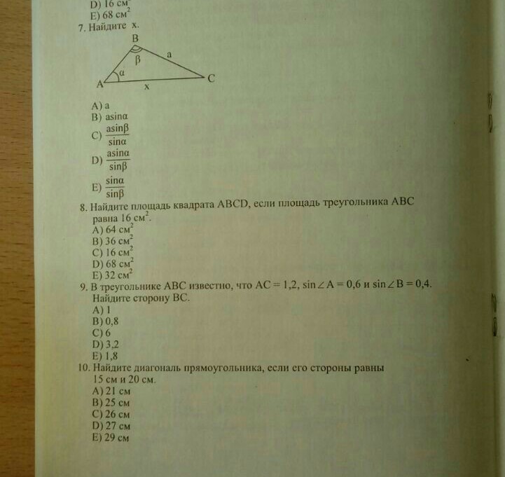 №9. Опять же по теореме синусов ВС= АС* sinA/sinB = 1.8. Ответ Е.