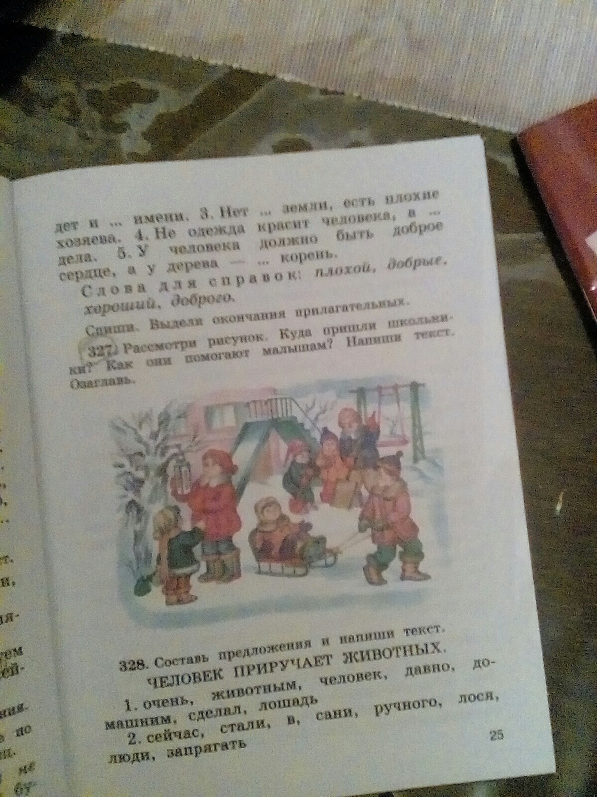 На дворе зима. Школьники пришли на детскую площадку. Они заметили, что дети хотят, чтобы им помогли и поиграли с ними. На площадке было 3 школьника. Один из них помог малышам сделать снеговика. 2 школьник повесть кормушку для птиц. А последний мальчик катает малыша в санках. Дети были рады что с ними поиграли и помогли им!