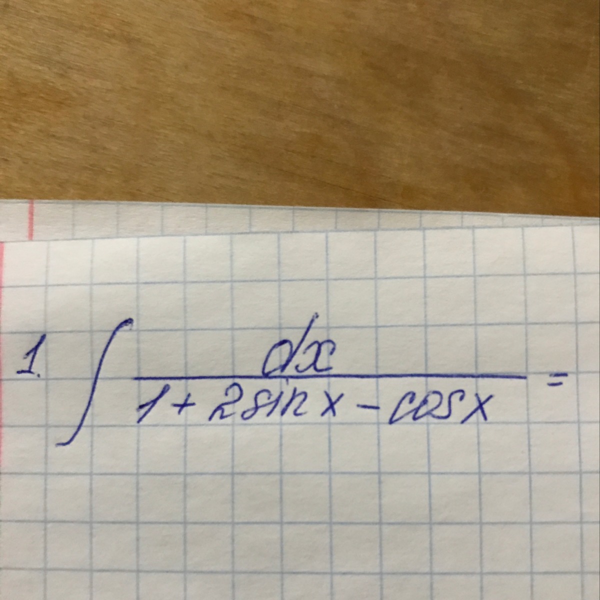 $$ large intfrac{dx}{1+2sinx-cosx}=intfrac{dt}{t^2+2t}=frac{1}{2}intfrac{dt}{t}-frac{1}{2}intfrac{dt}{t+2}=\=frac{1}{2}ln|t|-frac{1}{2}ln|t+2|+C=frac{1}{2}ln|frac{t}{t+2}|+C=frac{1}{2}ln|frac{tgfrac{x}{2}}{tgfrac{x}{2}+2}|+C\t=tgfrac{x}{2}\x=2arctgt\dx=frac{2dt}{1+t^2};sinx=frac{2t}{1+t^2};cosx=frac{1-t^2}{1+t^2}\1+2sinx-cosx=1+frac{4t}{1+t^2}-frac{1-t^2}{1+t^2}=frac{2t^2+4t}{1+t^2}