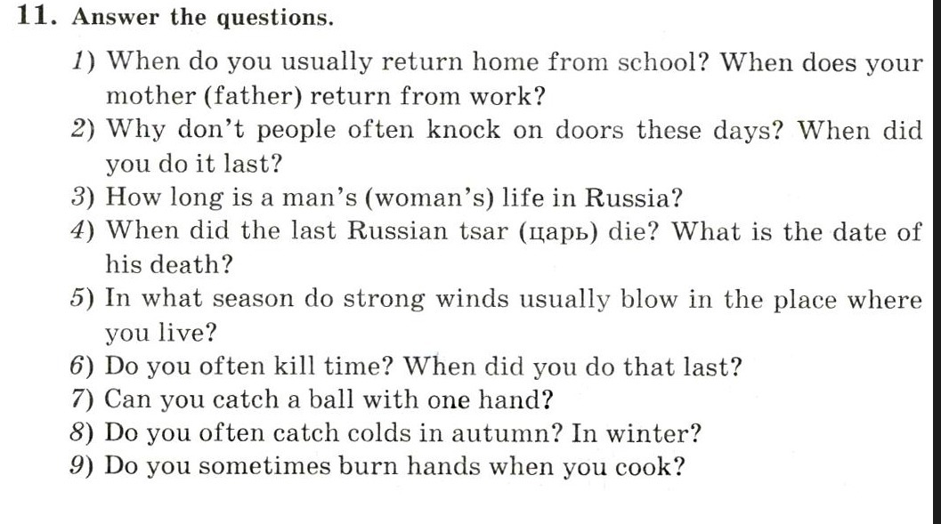 1) I usually return from school at 3pm. My mother returns at 18 o'clock.