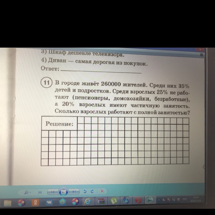 1) 260 000*0.35=91 000 (чел) - дети+подростки