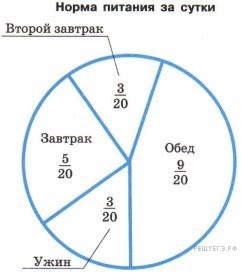 На диаграмме показано распределение дневной нормы питания, которую рекомендуют врачи. Используя диаграмму, ответьте на вопрос.