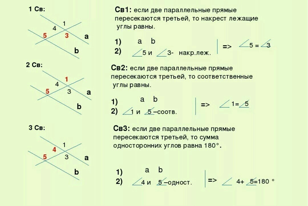 1. СВОЙСТВА параллельных прямых. +рисунок