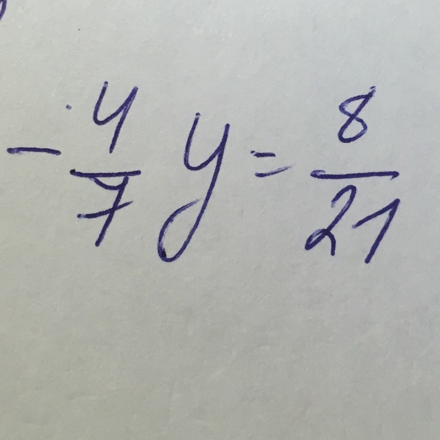 y=- 8*7/21*4; (мы 8 и 4 сокращаем, 21 и 7 тоже).