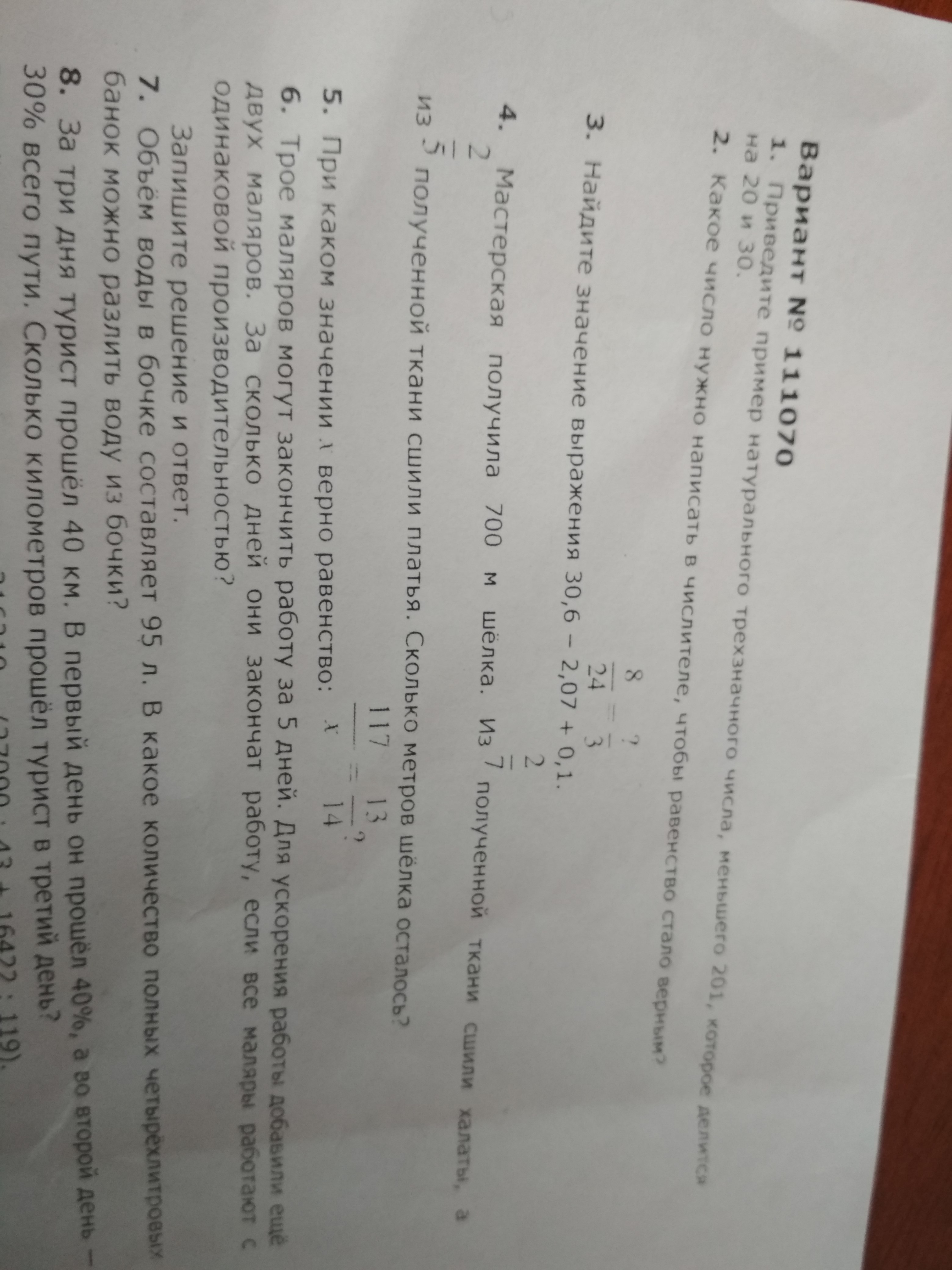 Мастерская получила 700 м шёлка. Из 2/7(дробь) ткани сшили халаты, а из 2/5(дробь) сшили платья. Сколько метров шёлка осталось?