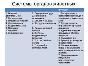 надо заполнить таблицу "система органов животных" 8 примеров.