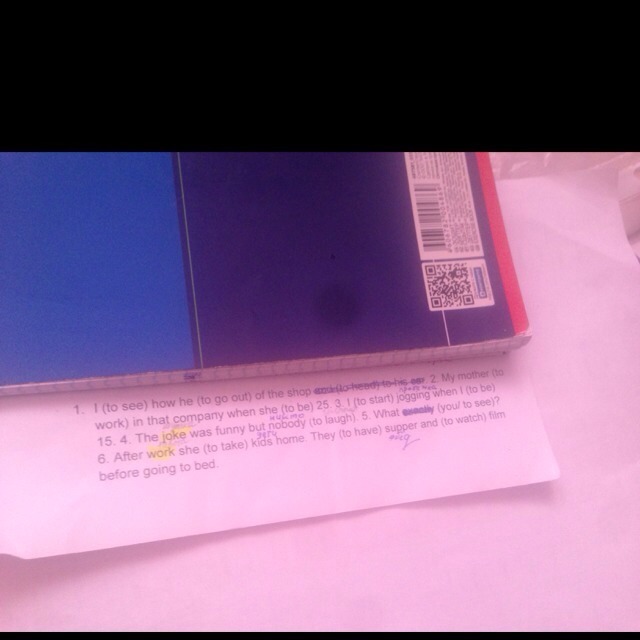 6) after work she took kids home. They were having supper and watching film before going to bed.