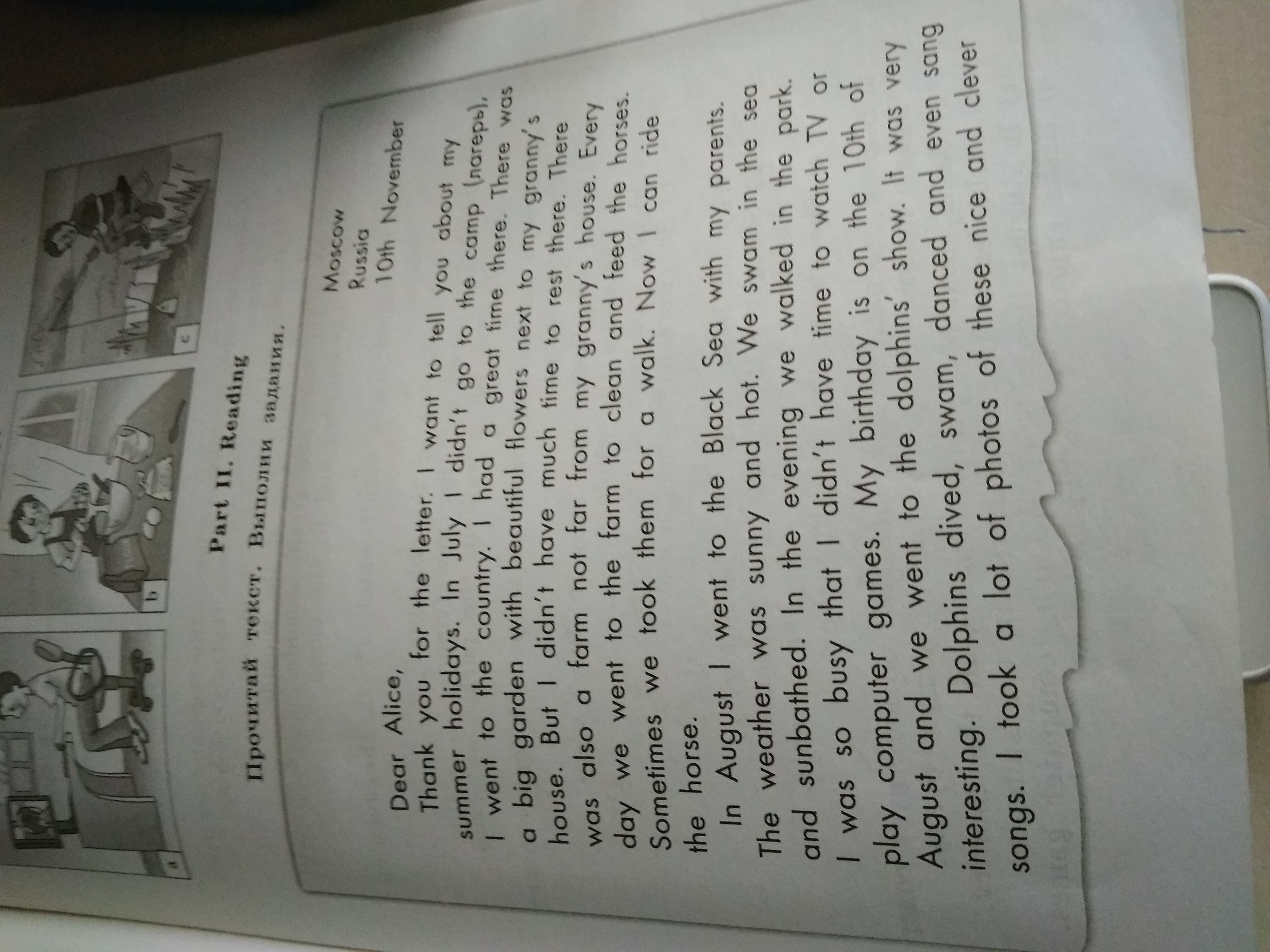 закончи предложение выбрав один вариант из трех предложенных обведи соответствующую букву Dasha spent her Summer holidays
