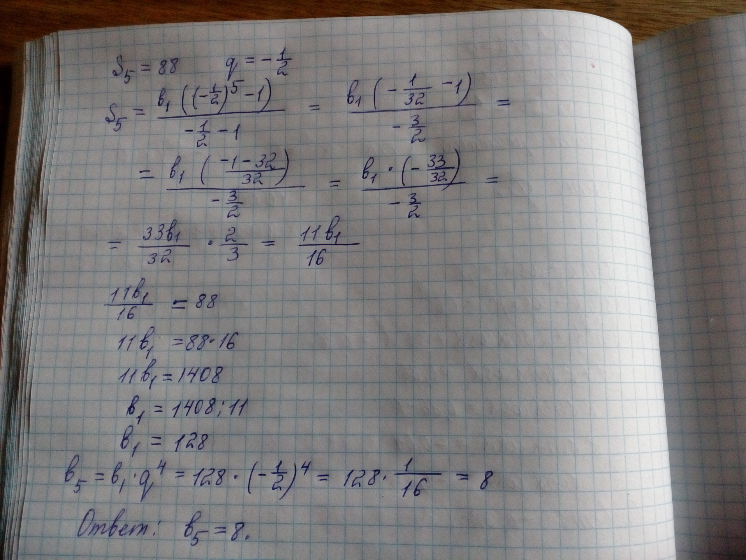 b1*( 1-1/2+1/4-1/8+1/16)=88