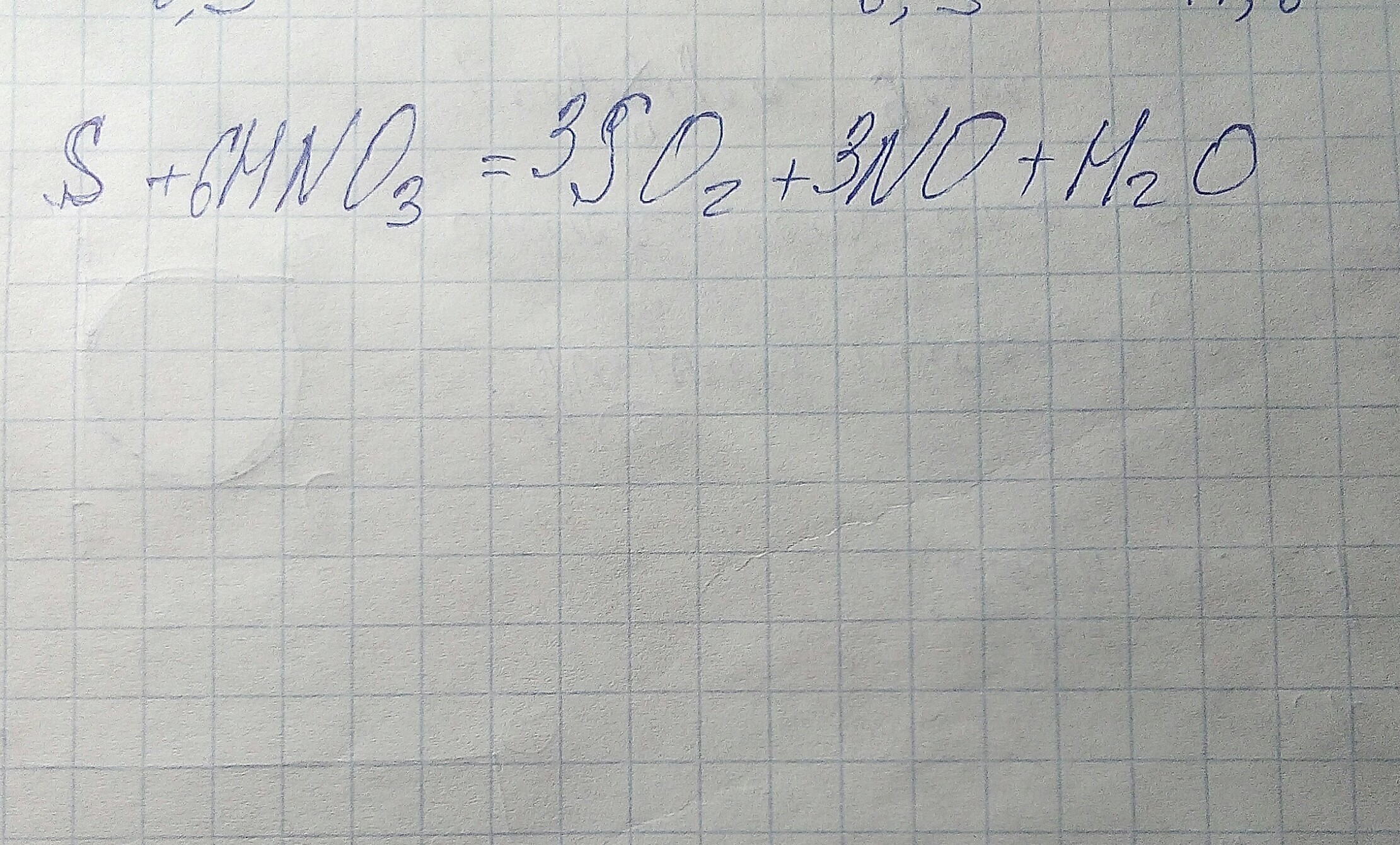 3S + 4HNO3 = 3SO2 + 4NO + 2H2O