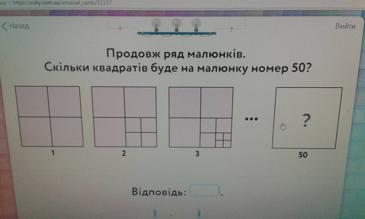 Продолжи ряд рисунков. Сколько квадратов будет на рисунке 50.