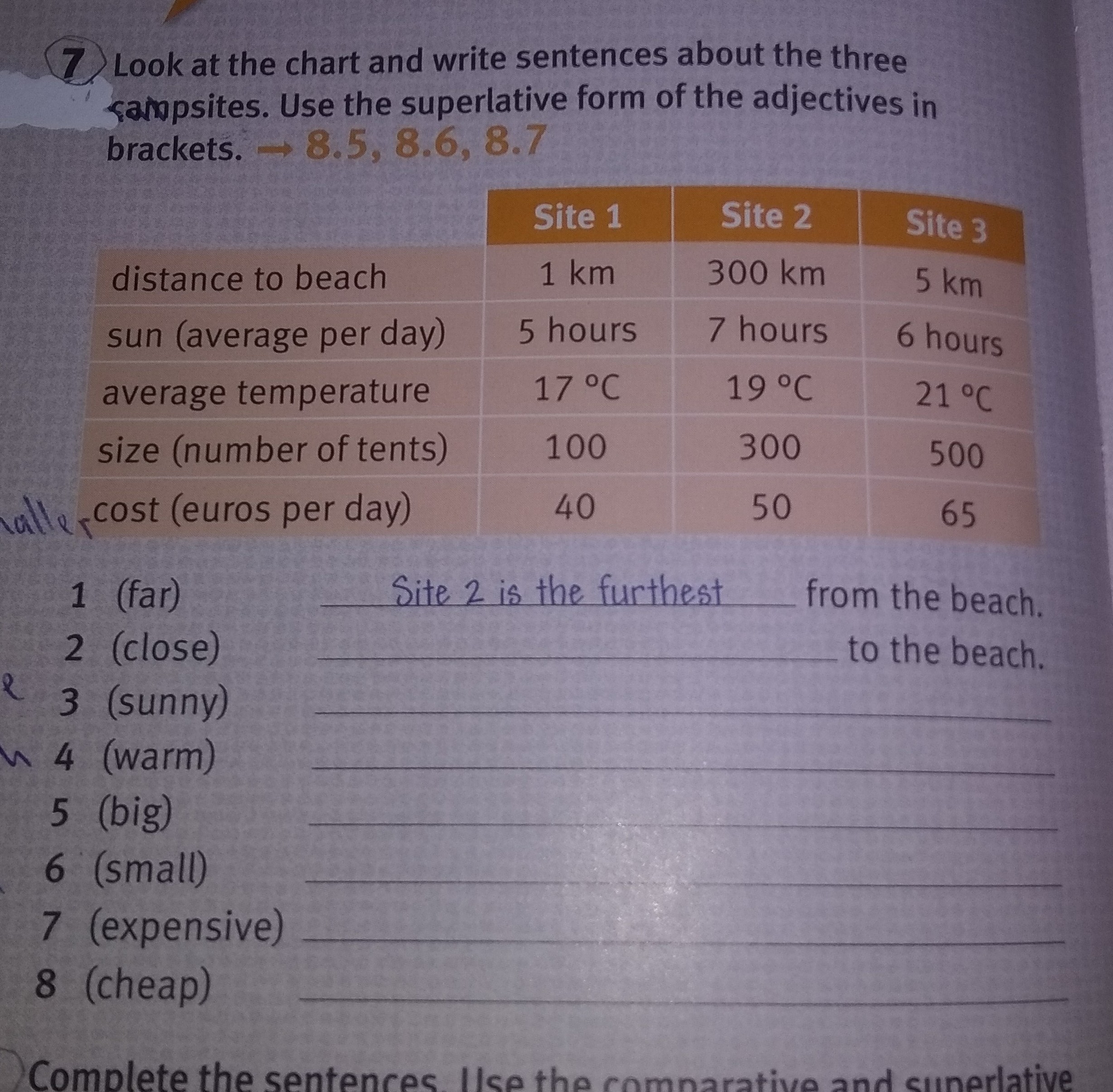 2. Site 1 is the closest to the beach