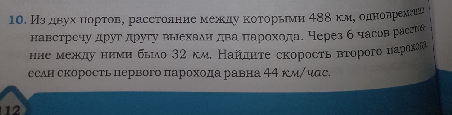 Найдем ростояние, которое проехал известный пароход: 44км/час * 6 часов=264км -растояние, которое проехал известный нам пароход. Найдем ростояние которое осталось: 418 км - 264 км = 154 км. Найдем посояние которое проехал неизвестный пароход за 6 часов: 154км - 32км = 122км. Найдем скорость неизстного парохода: 122км : 6 часов = 20,3км/час