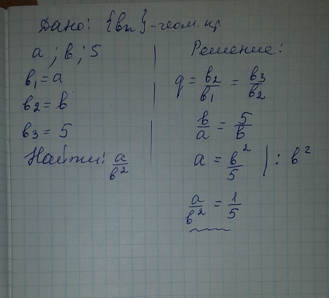 Числа а b и 5 являются тремя последовательными членами геометрической прогрессии. Найти значение выражения a/b^2
