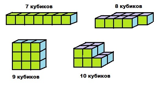 4. 10 кубиков склеены ступенькой