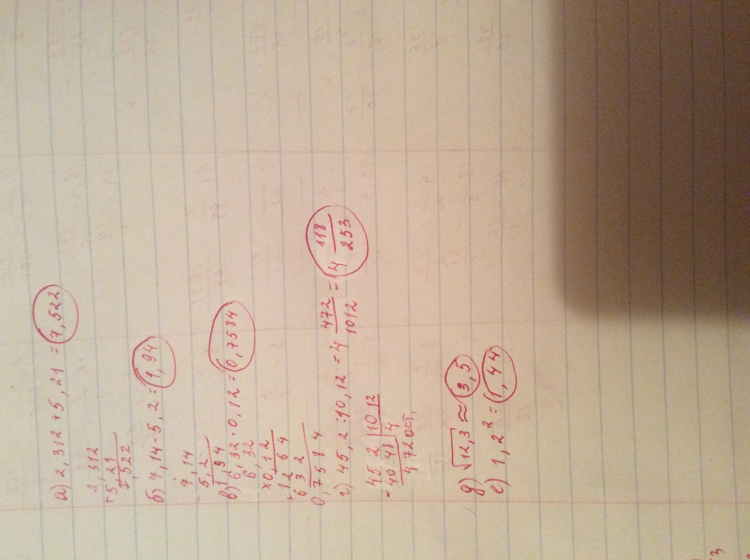 Выполнить действия над приближенными значениями чисел : А)2,312+5.21