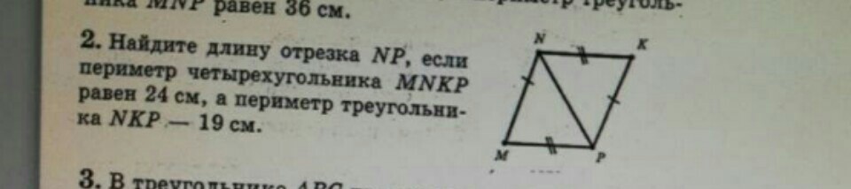 Дано:MNKP-четырехугольник.P(MNKP)=24 см;P(NKP)=19 см; NK=MP;NM=KP.