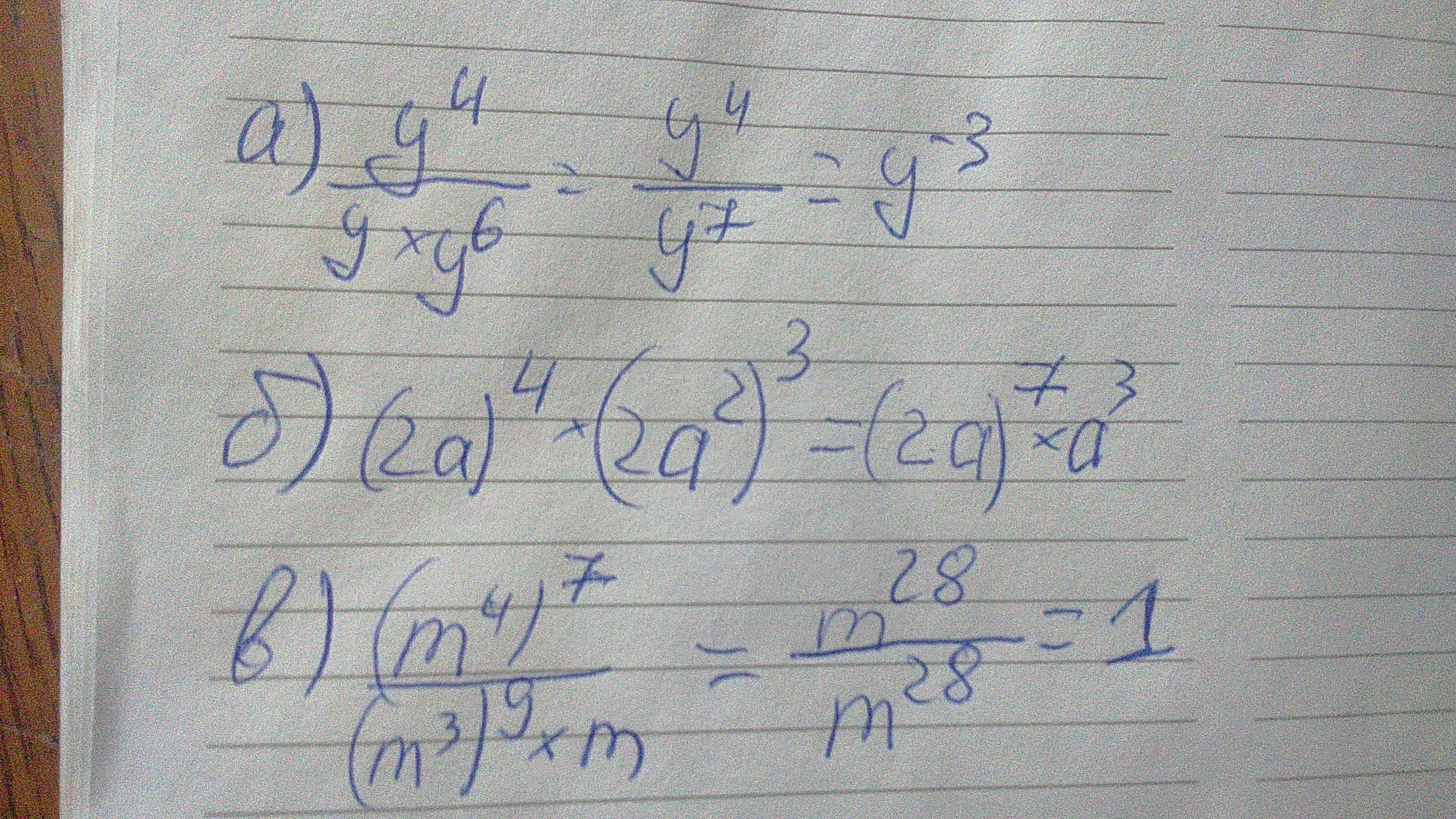 а) у⁴:у•(у²)³