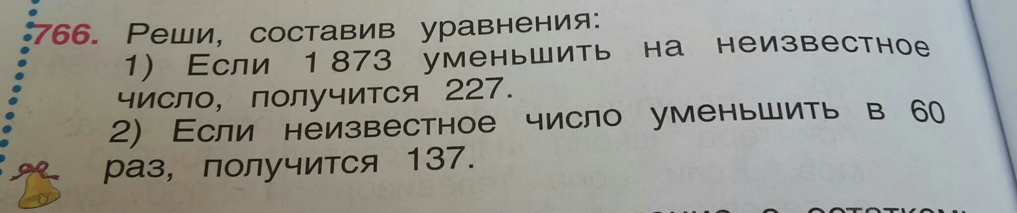 Если нужно решить без х и уравнений, то надо записать просто "1873-227=1646"