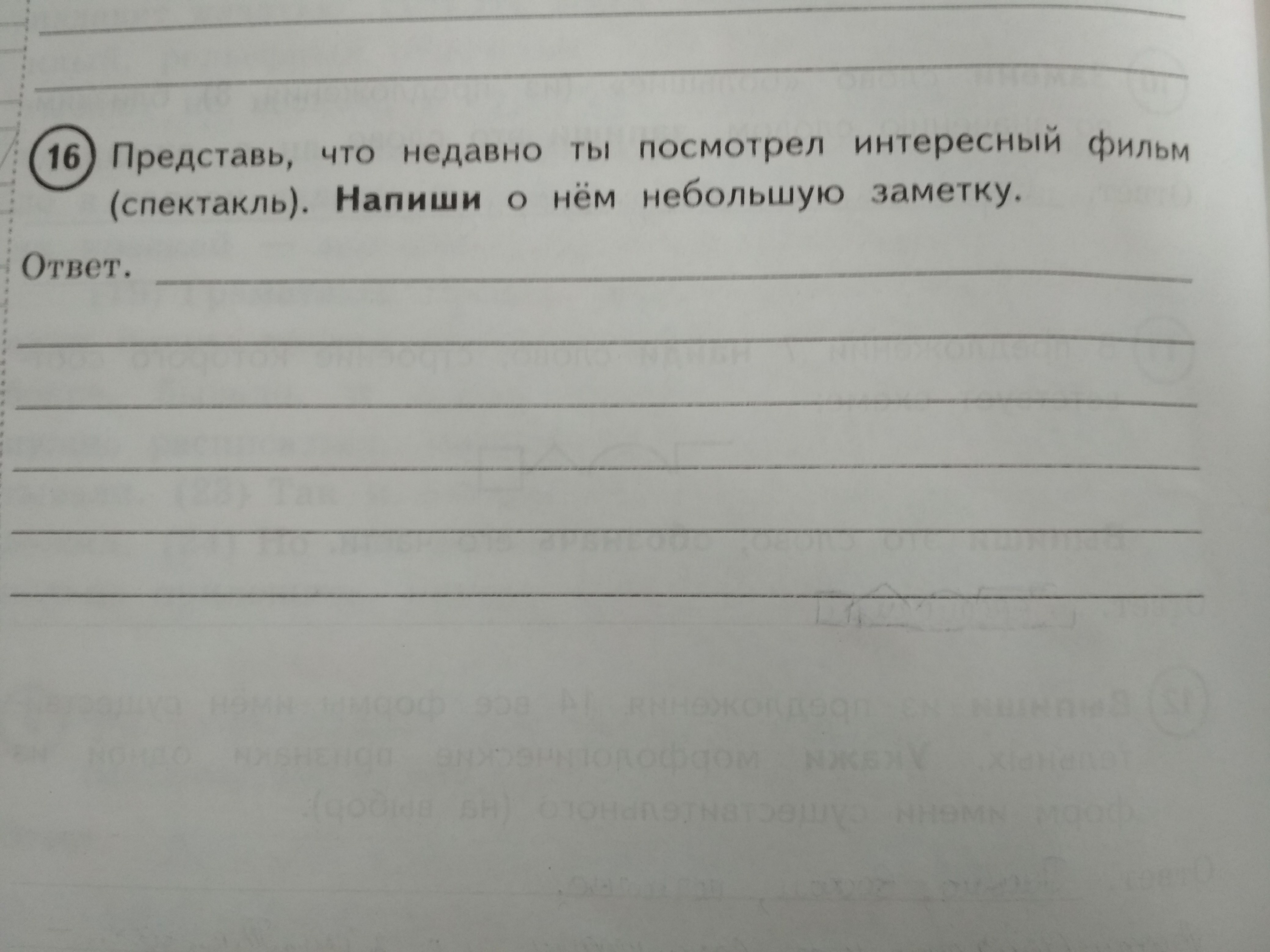Представь что недавно ты посмотрел интересный фильм(спектакль).Напиши о нём небольшую заметку
