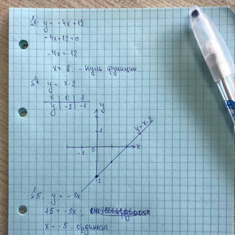5) у=-3х; 15=-3х; х=15:(-3); х=-5. Точка (-5; 15). Абсцисса точки х=-5.