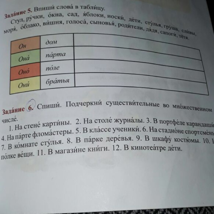 они окна яблоки носки дети стулья сливы моря сыновья родители сапоги