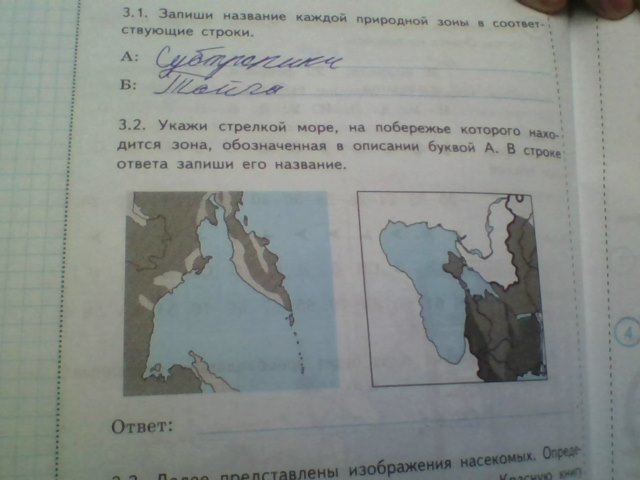 Укажи стрелкой море,на побережье которого находится зона,обозначеная в описании буквой А.В строке ответа запеши его нозвание