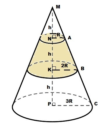 V₂ - объём конуса с высотой MK;