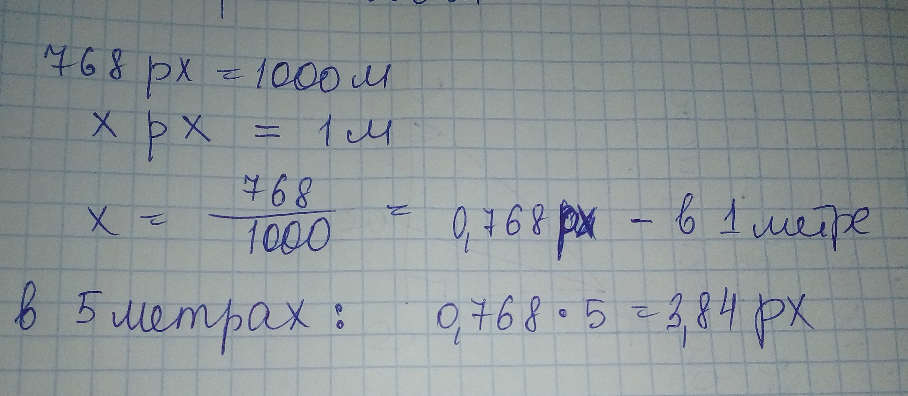 Есть прямоугольник 1920px на 768px. 1920 это 5000м, а 768 это 1000м. Нужно узнать сколько px в 5м.