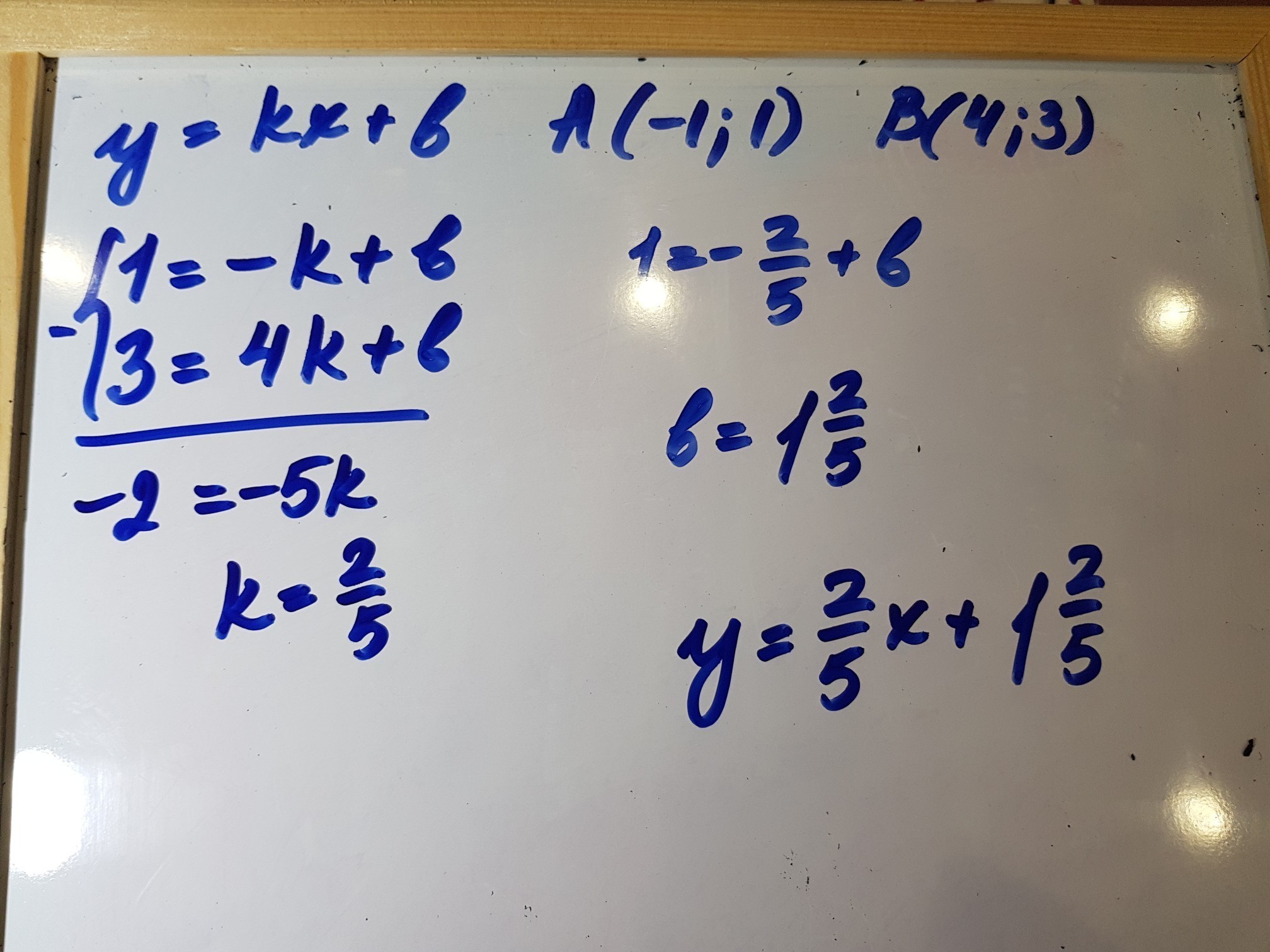 Напишите уравнения прямой, проходящей через точки A(-1;1) и B(4;3)