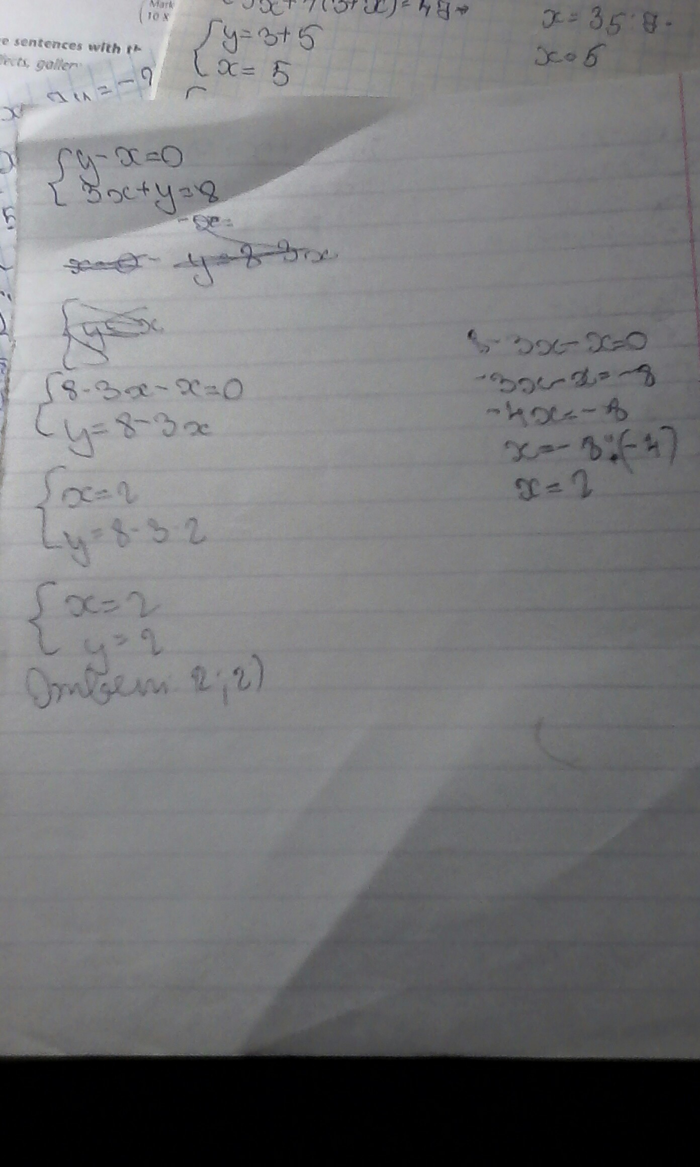 в)x-3y=8