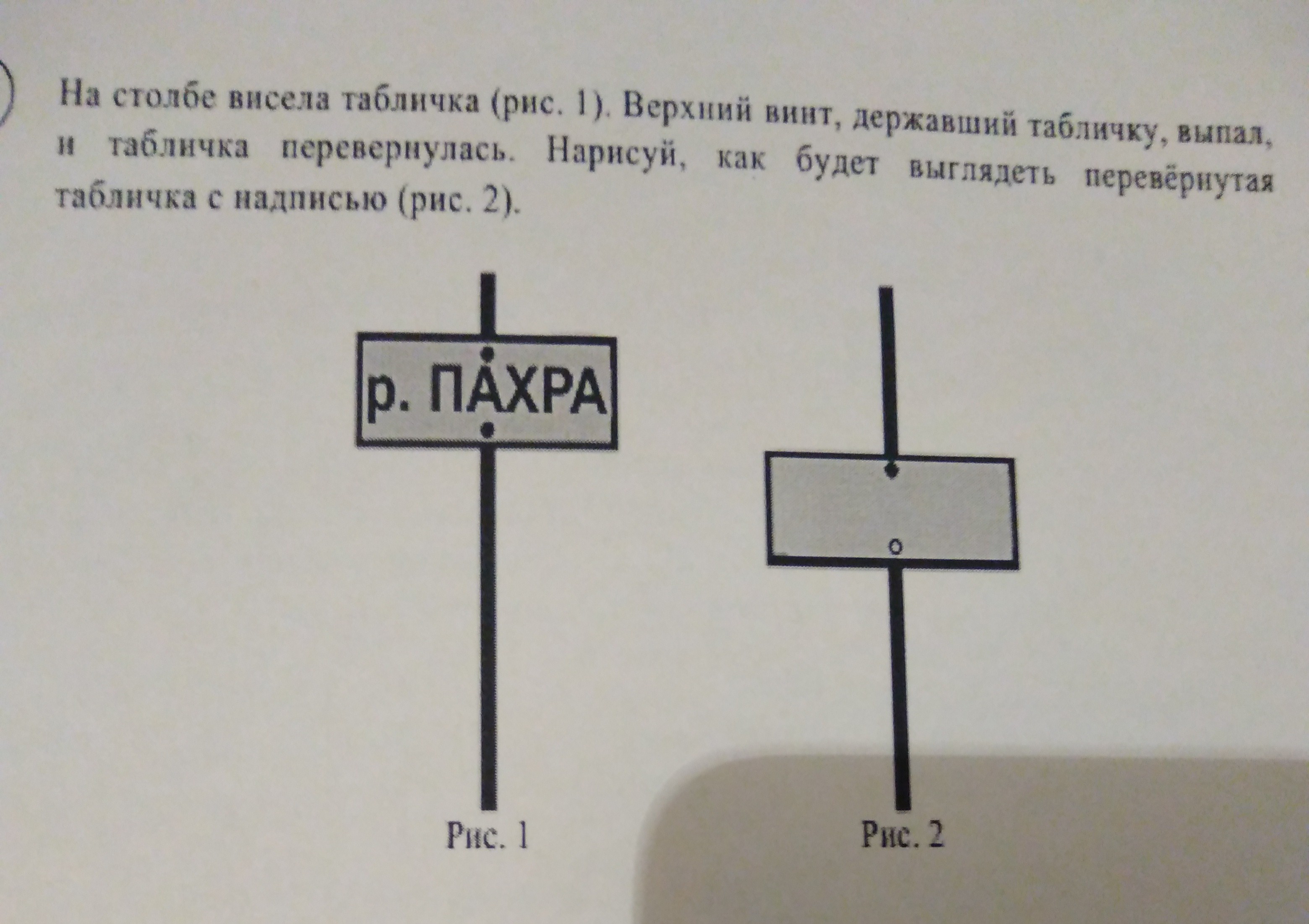 на столбе висела табличка рисунок 1 верхний винт державший табличку выпал и табличка перевернулась Нарисуй как будто выглядит повернуты на табличка с надписью и сынок 2