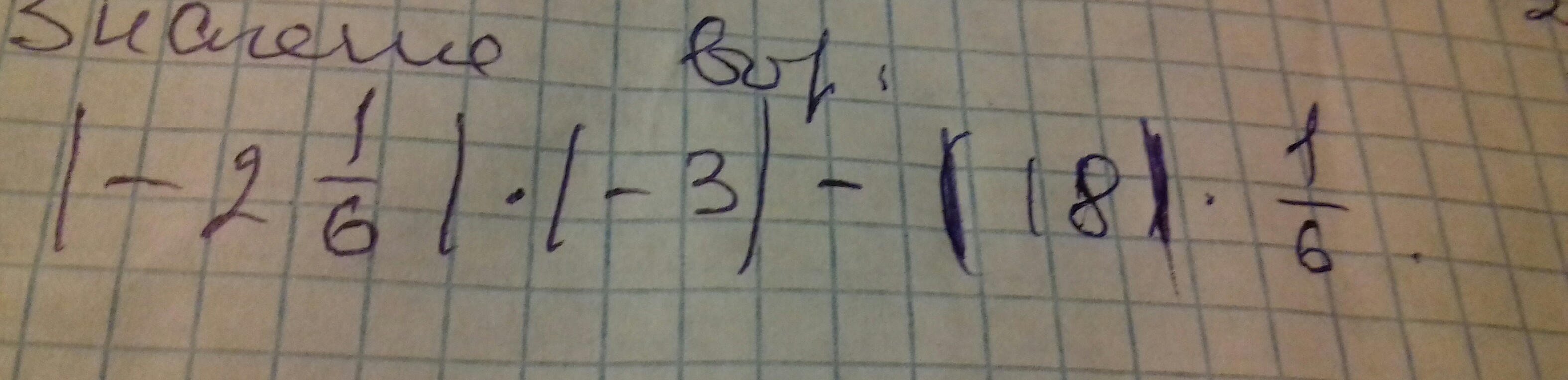 -2 1/6 * - 3 - 8* 1/6 = 6 3/6 - 1 1/3 = 6 3/6 - 1 2/6 = 5 1/6