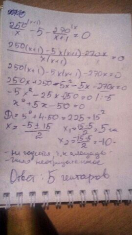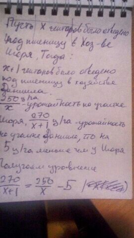 В фермерском хозяйстве Игоря под пшеницу было отведено на 1 гектар меньше, чем в хозяйстве Данила, при этом урожайность пшеницы в хозяйстве Игоря на 5 центнеров с гектара больше. Если Игорь собрал 270 центнеров пшеницы а Данил 250 центнеров пшеницы то сколько гектаров было отведено под пшеницу в хозяйстве Игоря?