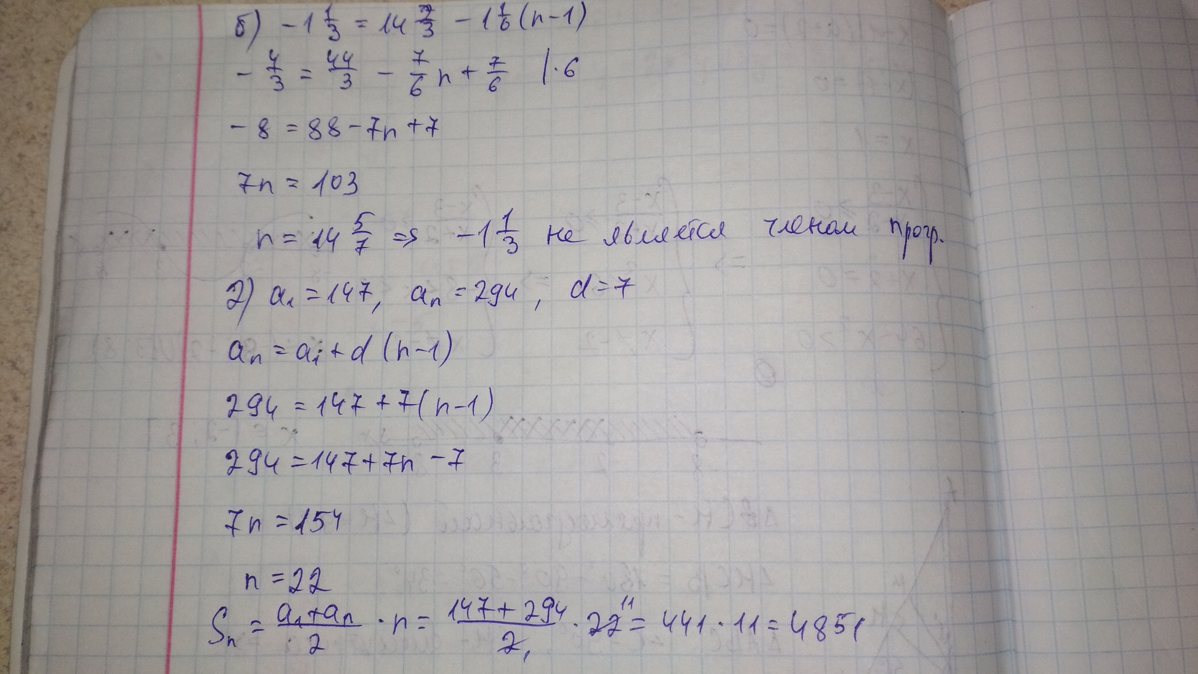 Дана арифметическая прогрессия 14 целых 2/3 ; 13 целых 5/6 ; ... . Проверьте, являются ли членами этой прогрессии числа: