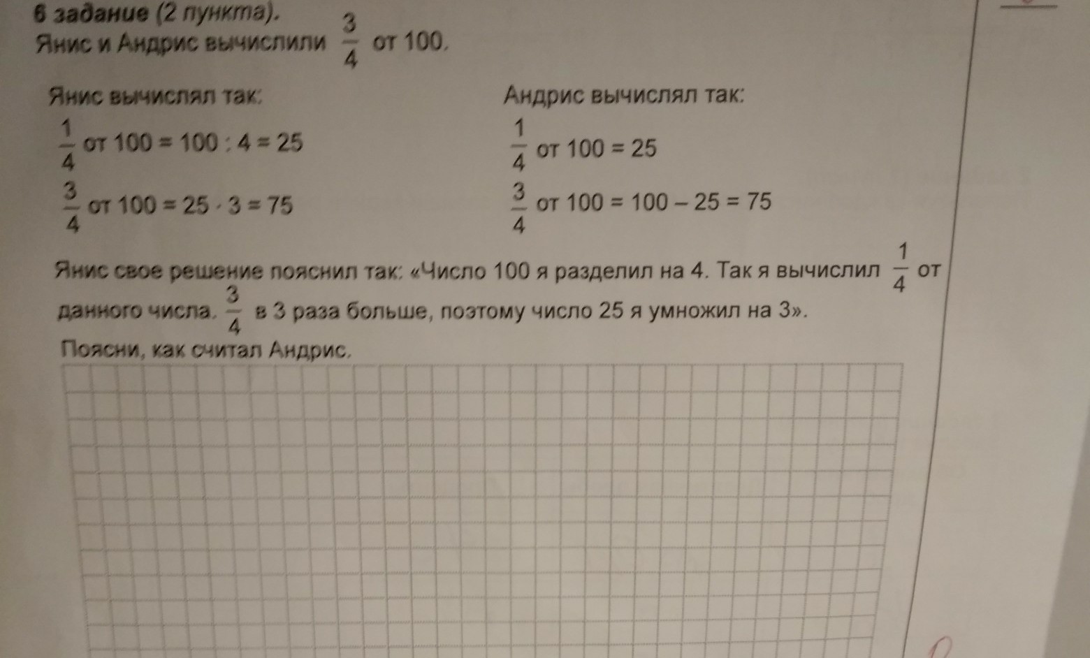 Начало с 1/4 как и у первого, но потом: "100 - это одна целая, а 3/4=1-1/4, поэтому из 100 я вычел 25"