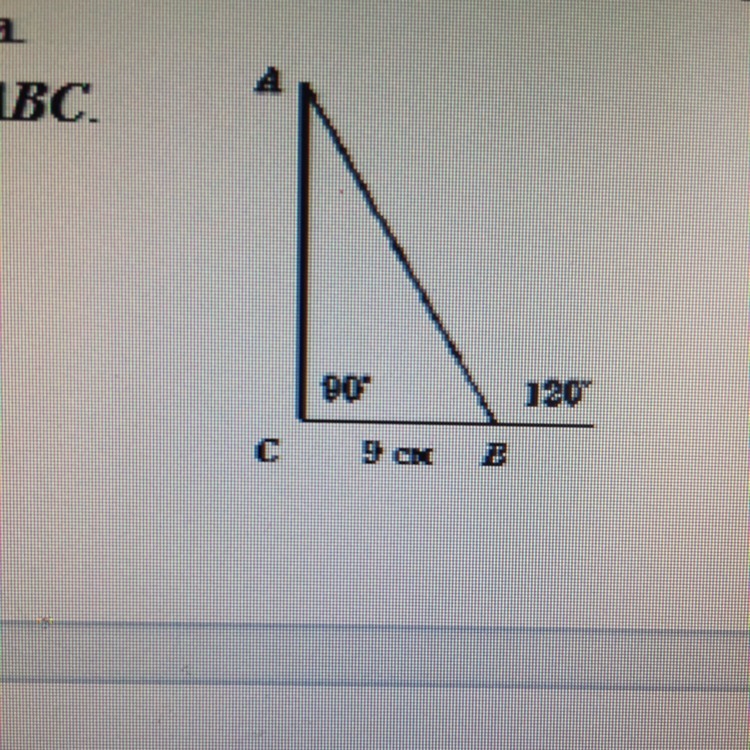 Там длина гипотенузы 18 см. Так как /_ В=180-120=60°, тогда /_А=30°. Тогда по теореме прямоугольного треугольника напротив угла 30° лежит катет равный половине гипотенузы. Следовательно гипотенузы 9×2=18 см