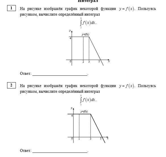 1) Вычислим площадь криволинейной трапеции, которая на самом деле явл. трапецией с основаниями , равными 3 и 5, высотой, равной 4 :