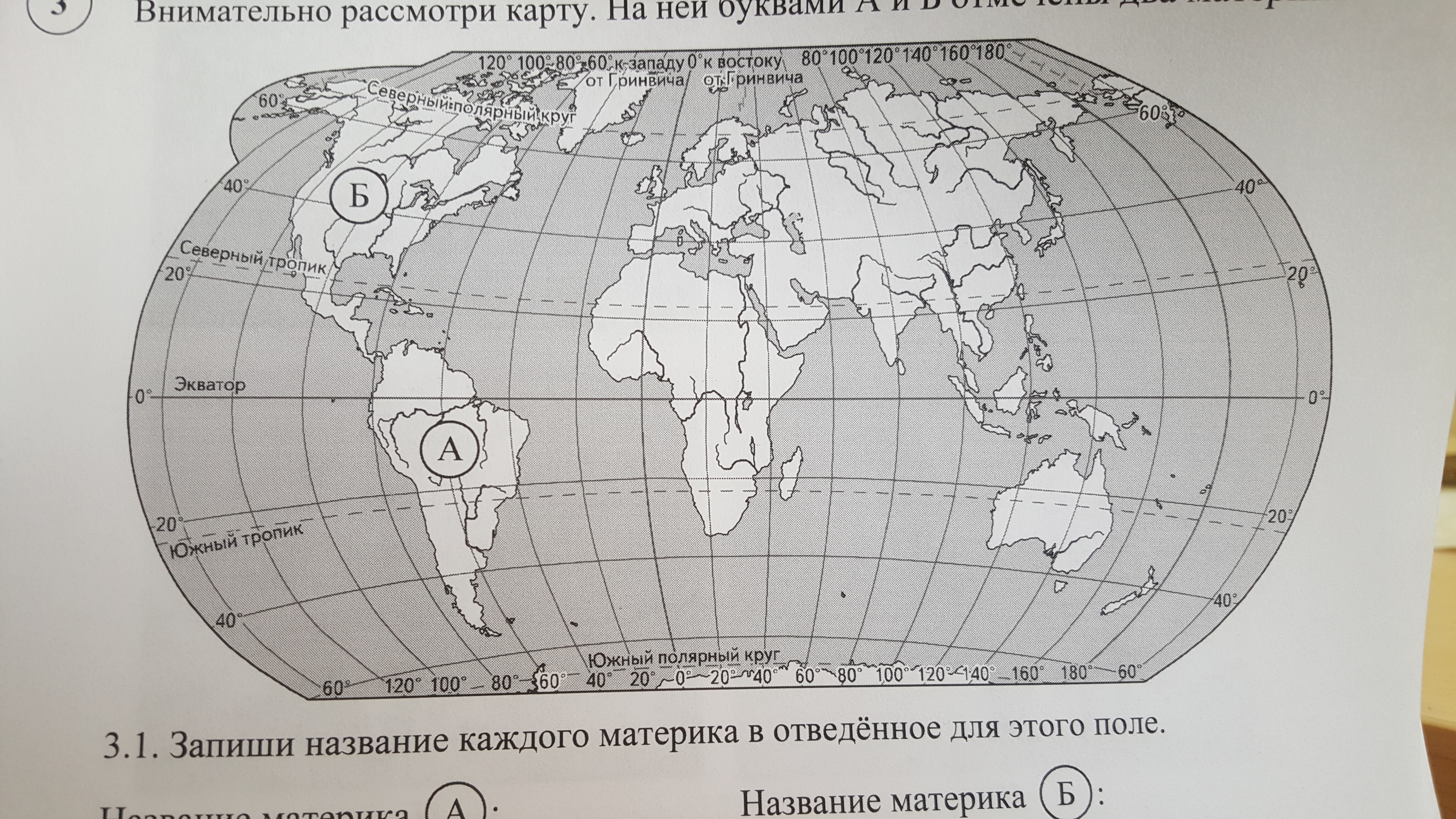Помогите с картой!!Внимательно рассмотри карту.На ней буквами А и Б отмечены два материка.