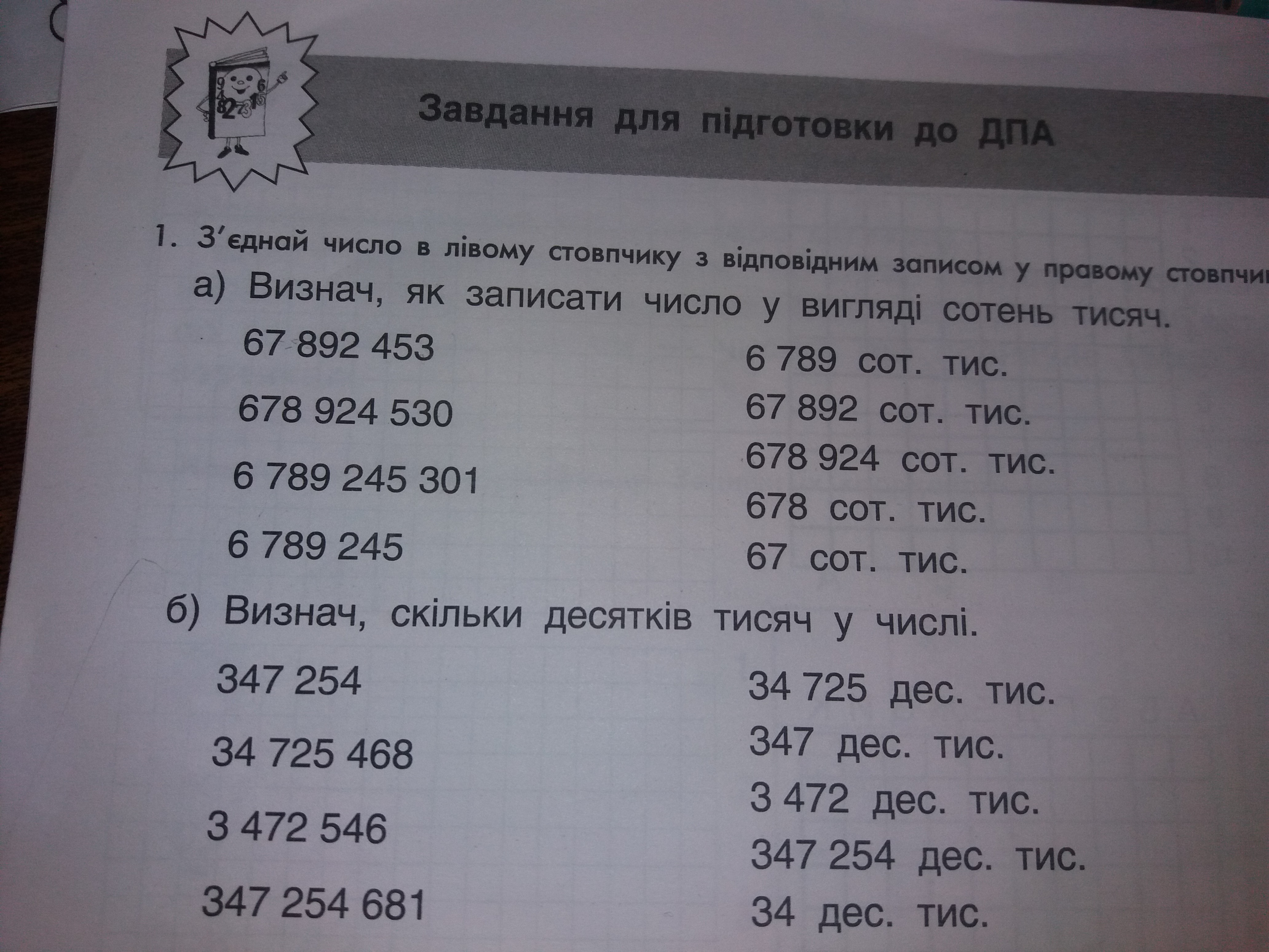 Соотношение между левым и правым столбцами, например, а) 1 - 4 (67892453 - 678 сот. тыс.)