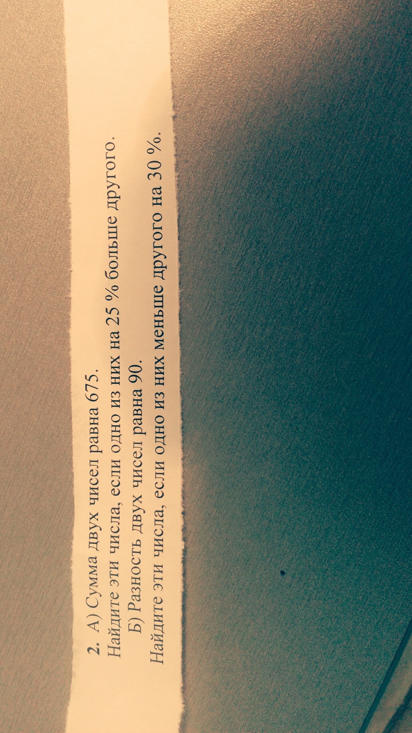 2пусть большее число х,тогда меньшее х-0,3х= 0,7х Разность чисел 90 Составим уравнениех-0,7х=900,3х=90х=90:0,3х=300 большее число300*0,7=210 меньшее число