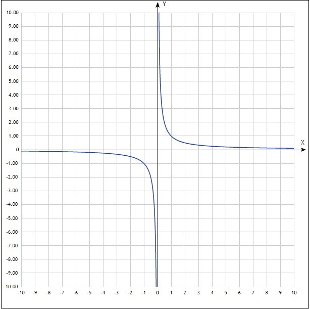 постройте график функции y=1/x . Найдите область определения функции. укажите , при каких значениях x функция принимает положительные знаки и при каких отрицательные.