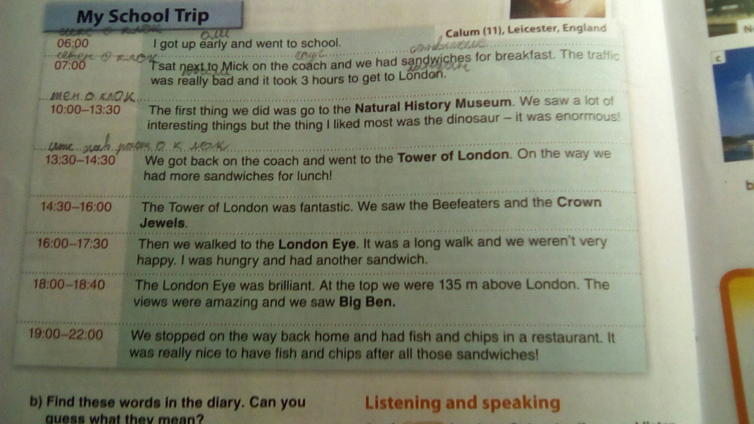 Я сел рядом с Миком в автобусе и мы съели сэндвичи на завтрак. На дорогах были ужасные пробки и мы добрались до Лондона за 3 часа