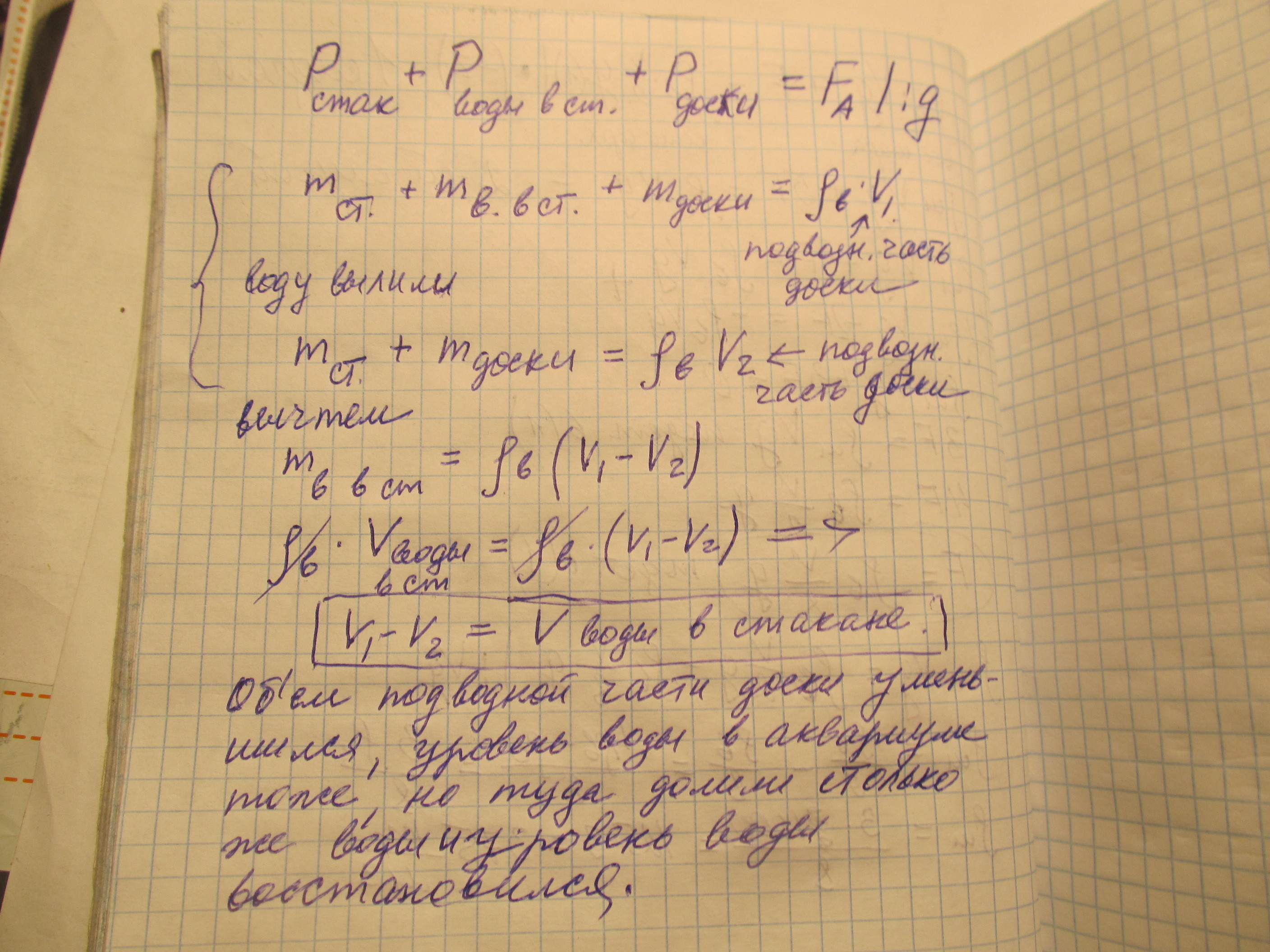 В аквариуме плавает доска, на которой стоит стакан с водой. Что произойдёт с уровнем воды в аквариуме, если вылить воду из стакана в аквариум, а стакан снова поставить на доску?