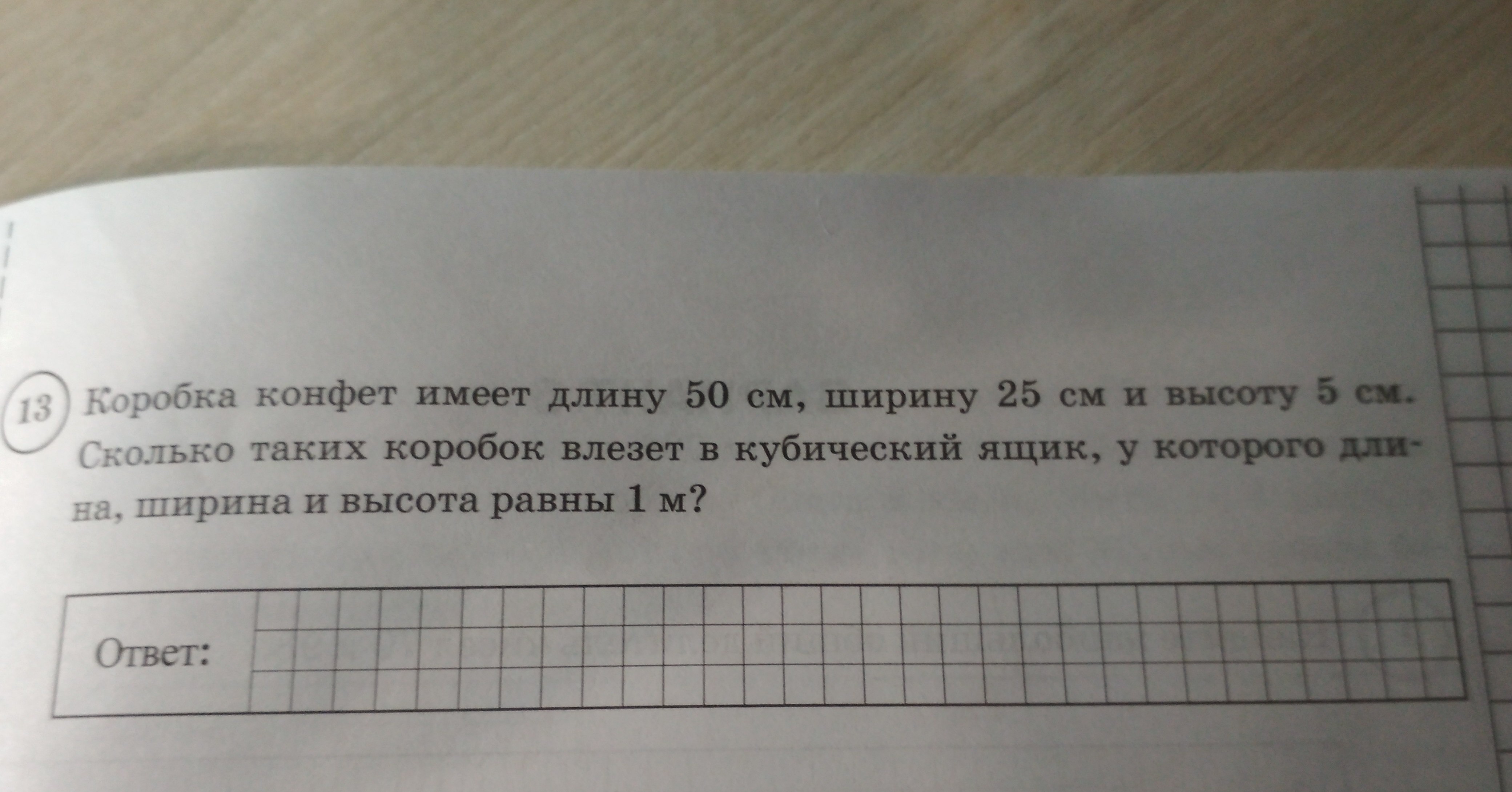V=0,5х0,25х0,05=0,00625м3 - объем коробки