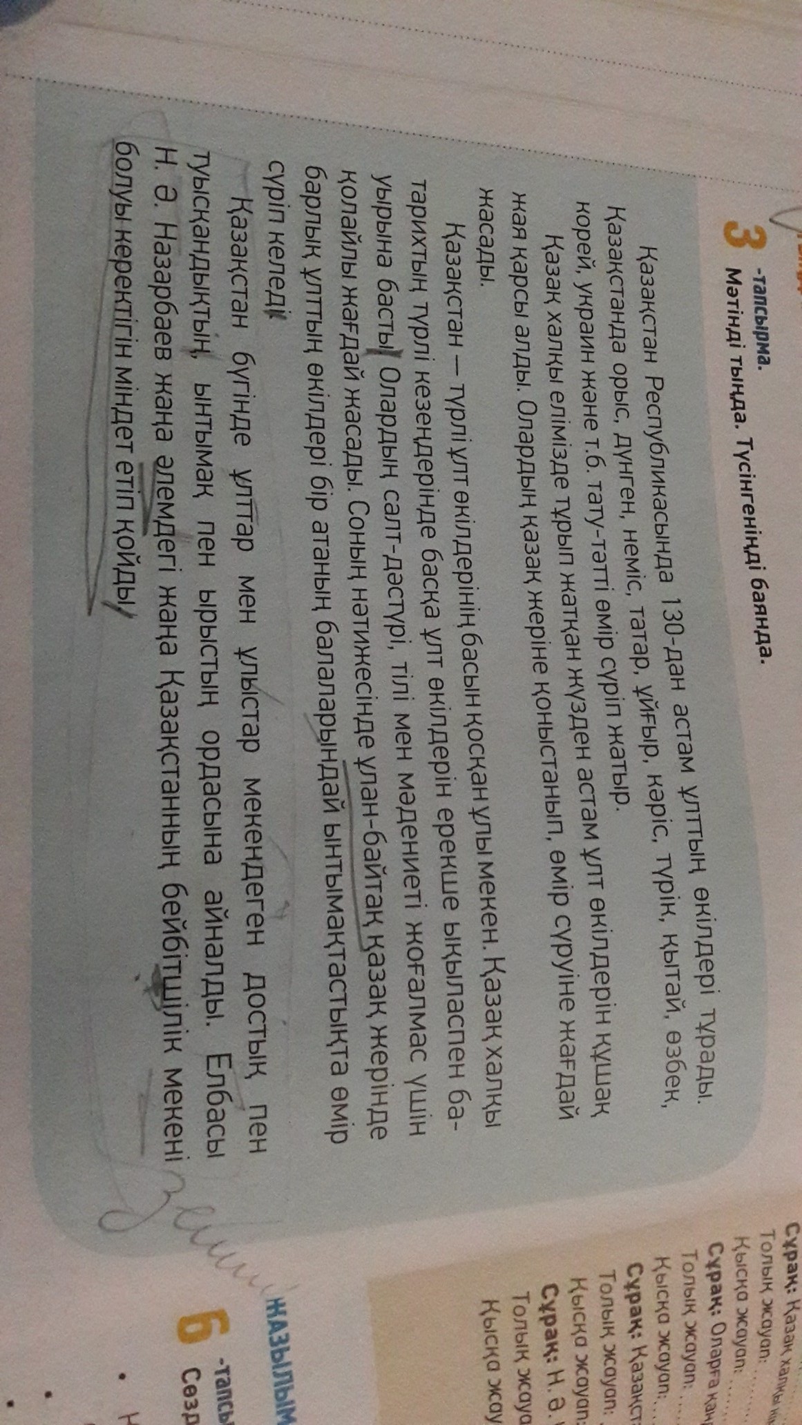 В Республике Казахстан проживают представители более 130 национальностей. В Казахстане русские, дунганы, немцы, татары, уйгуры, турки, китайцы, узбеки, корейцы, украинцы и другие живут в мире. Казахстанцы приветствовали более ста национальностей, проживающих в нашей стране. Они обосновались на казахской земле и зарабатывали на жизнь. Казахстан - великая родина, объединяющая представителей разных национальностей. На разных этапах истории казахского народа с большим удовольствием опомнились люди других национальностей. Они создали благоприятную среду для утраты своих традиций, языка и культуры. В результате представители всех национальностей живут в гармонии с детьми того же отца, как и на обширной казахской земле. Сегодня Казахстан стал центром дружбы и братства, солидарности и мира со странами и национальностями. Глава государства Н.А.Назарбаев Назарбаев поставил перед собой цель превратить новый мир в новый мир Казахстана.