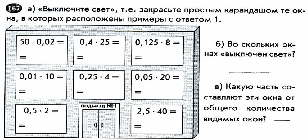 "Выключите свет",т.е закрасьте простым карандашом те окна,в которых расположены примеры с ответом 1.