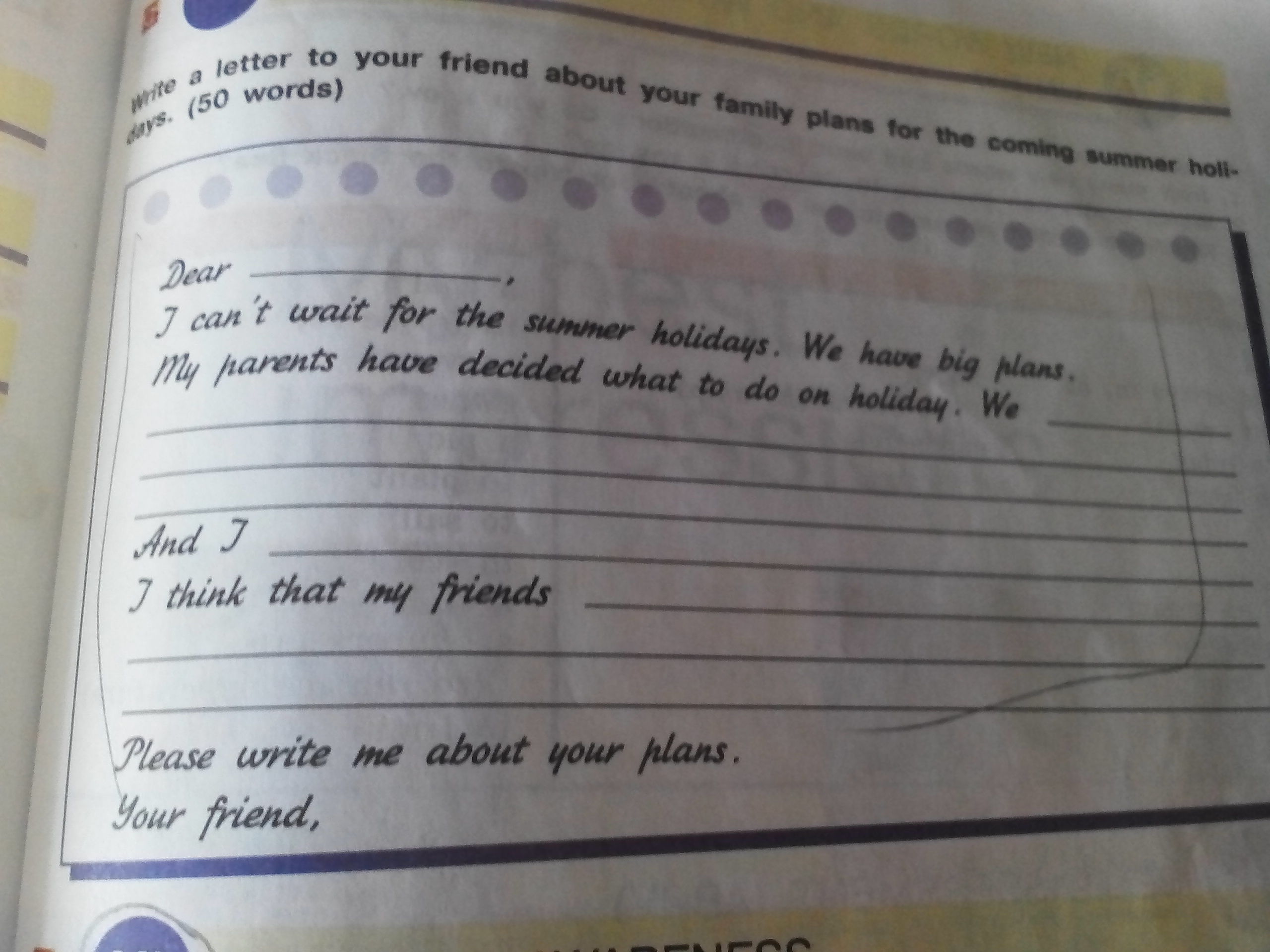 My parents have decided what to do on holiday. We are going to visit our family friends who live in Cyprus. I have never been abroad, so I’m very happy about my parents’ decision.