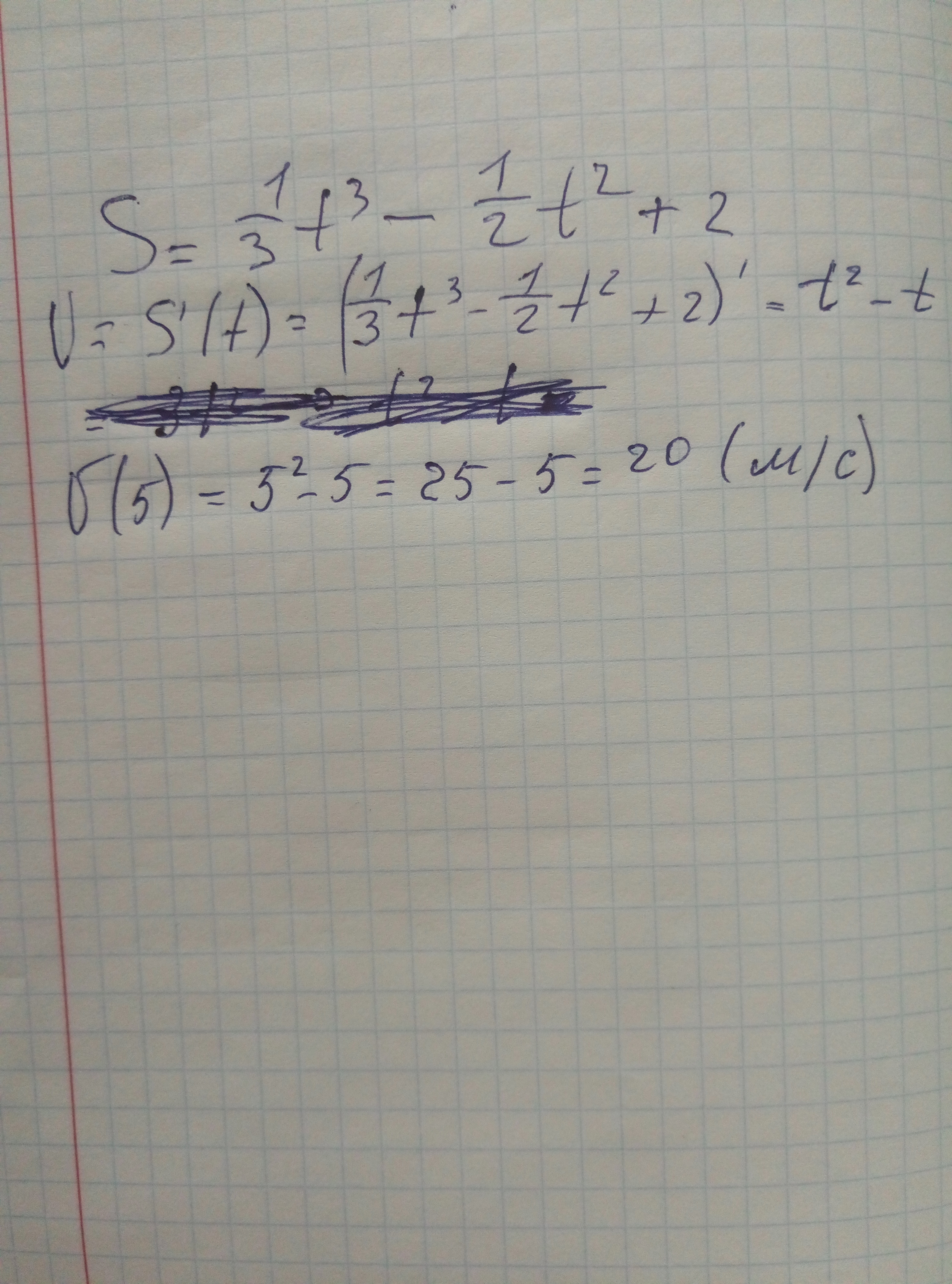 V(5) = 5^2-5=20(м/с)
